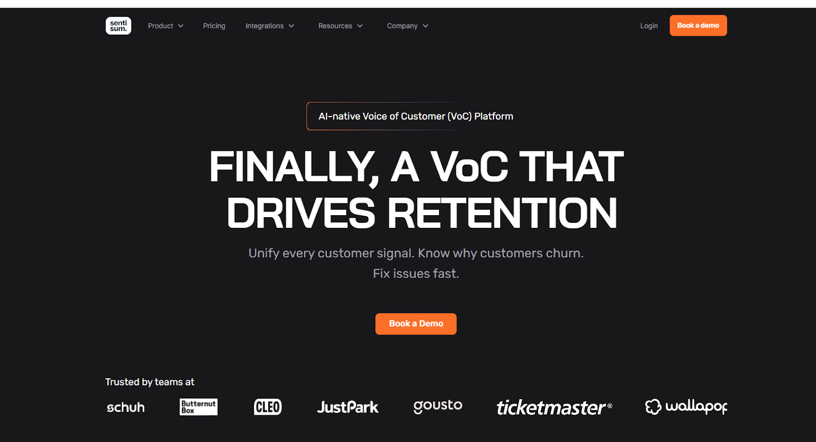 One of the best customer insights software, SentiSum, an AI-native Voice of Customer platform, is engineered to process and interpret unstructured customer feedback at scale.