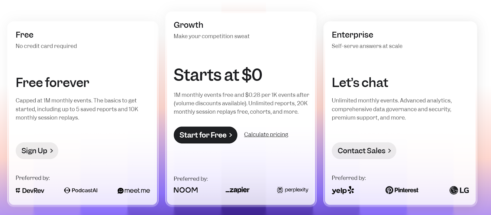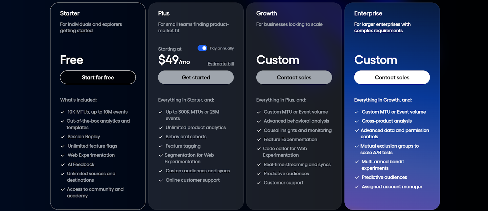 Amplitude’s Plus Plan pricing starts at $49; offers custom pricing for enterprise.