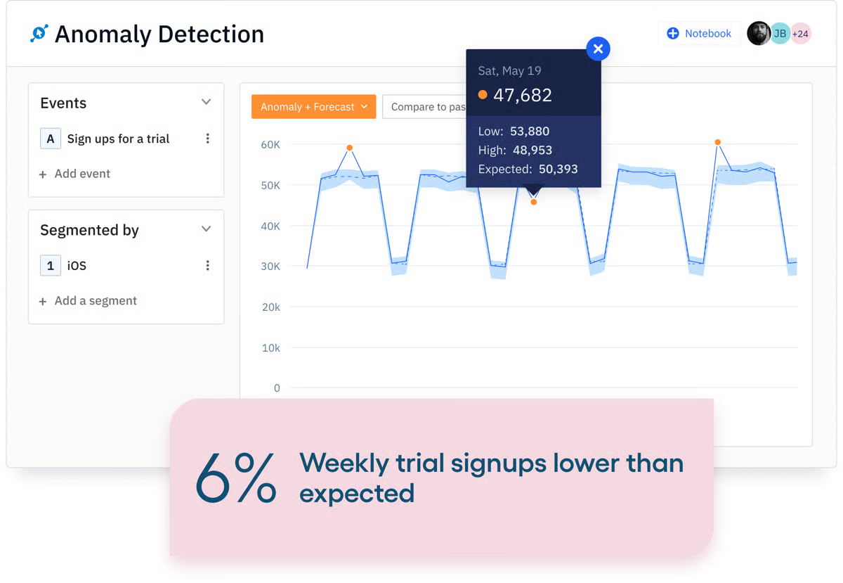 - Impact analysis for root cause identification: Automatically surfaces which specific user behaviors or segments are most correlated with a change in your key metrics, moving beyond tracking ‘what’ changed to explaining ‘why’