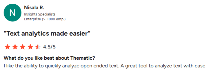 - Responsive Customer Support: Several reviews mention that Thematic’s support/customer success teams are helpful, responsive, and collaborative.